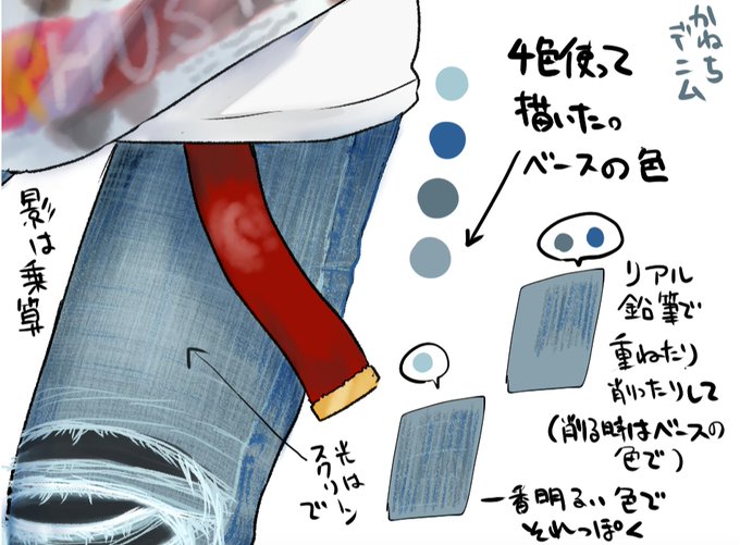 秘密のテクニック デニム生地の描き方メイキング いちあっぷ