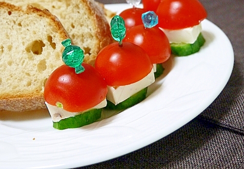 スライスチーズとミニトマトのピンチョス パパ おなかすいた Papa Ho Fame 2